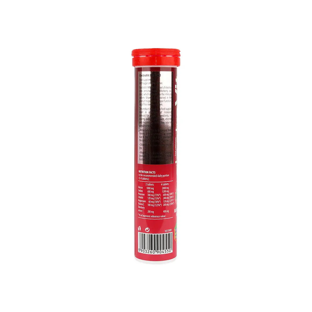 إلكتروفيت إيمونو هو مجموعة من الإلكتروليتات مُدعّمة بمستخلص البيلسان (Elderberry) الذي يُقوّي جهاز المناعة. يساعد فيتامين C الموجود في المنتج في الأداء الطبيعي لجهاز المناعة.