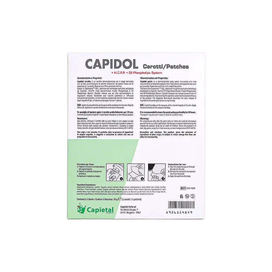 لصقات كابيدول هي لصقات جلدية علاجية مصممة لتخفيف آلام العضلات والمفاصل بشكل موضعي. تعتمد على تركيبة متقدمة بتقنية الليبوسومات التي تساعد على إيصال المستخلصات النباتية والزيوت العطرية بفعالية إلى موضع الألم، مع تأثير مهدئ يدوم لفترة طويلة.