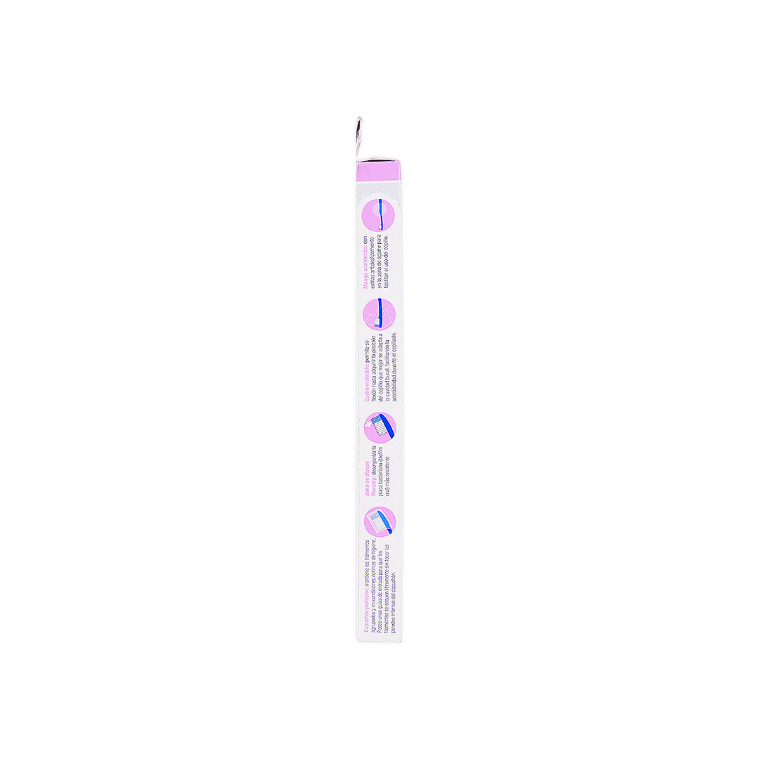 The Vitis ultrasoft toothbrush features extra-soft filaments with a straight profile for proper oral hygiene after surgery. Its soft filaments effectively remove oral biofilm (bacterial plaque) while gentle on the surgical area.