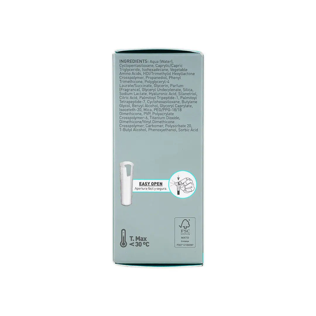 Aqua, Cyclopentasiloxane, Caprylic/Capric Triglyceride, Isohexadecane, Vegetable Amino Acids, HDI/Trimethylol Hexyllactone Crosspolymer, Propanediol, Phenyl Trimethicone, Polyglyceryl‑4 Laurate/Succinate, Glycerin, Parfum (Fragrance), Glyceryl Undecylenate, Silica, Sodium Lactate, Hyaluronic Acid, Silanetriol, Citric Acid, Palmitoyl Tripeptide‑1, Palmitoyl Tetrapeptide‑7, Cyclohexasiloxane, Butylene Glycol, Benzyl Alcohol, Glyceryl Caprylate, Isoceteth‑20, Mica, PEG/PPG‑18/18 Dimethicone, PVP, Polyacrylate Crosspolymer‑6, Titanium Dioxide, Dimethicone/Vinyl Dimethicone Crosspolymer, Carbomer, Polysorbate 20, T‑Butyl Alcohol, Phenoxyethanol, Sorbic Acid