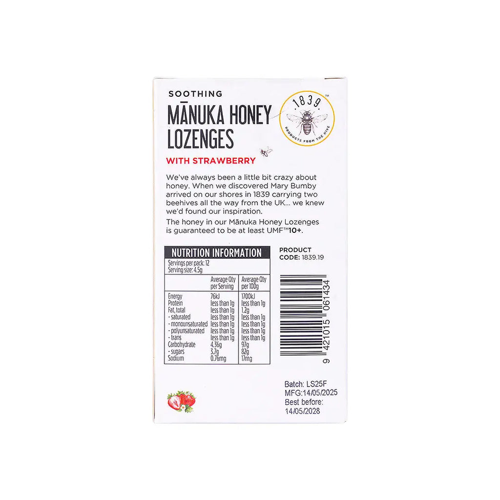 1839 Manuka Honey Lozenges UMF10+ 12pcs-Strawberry
