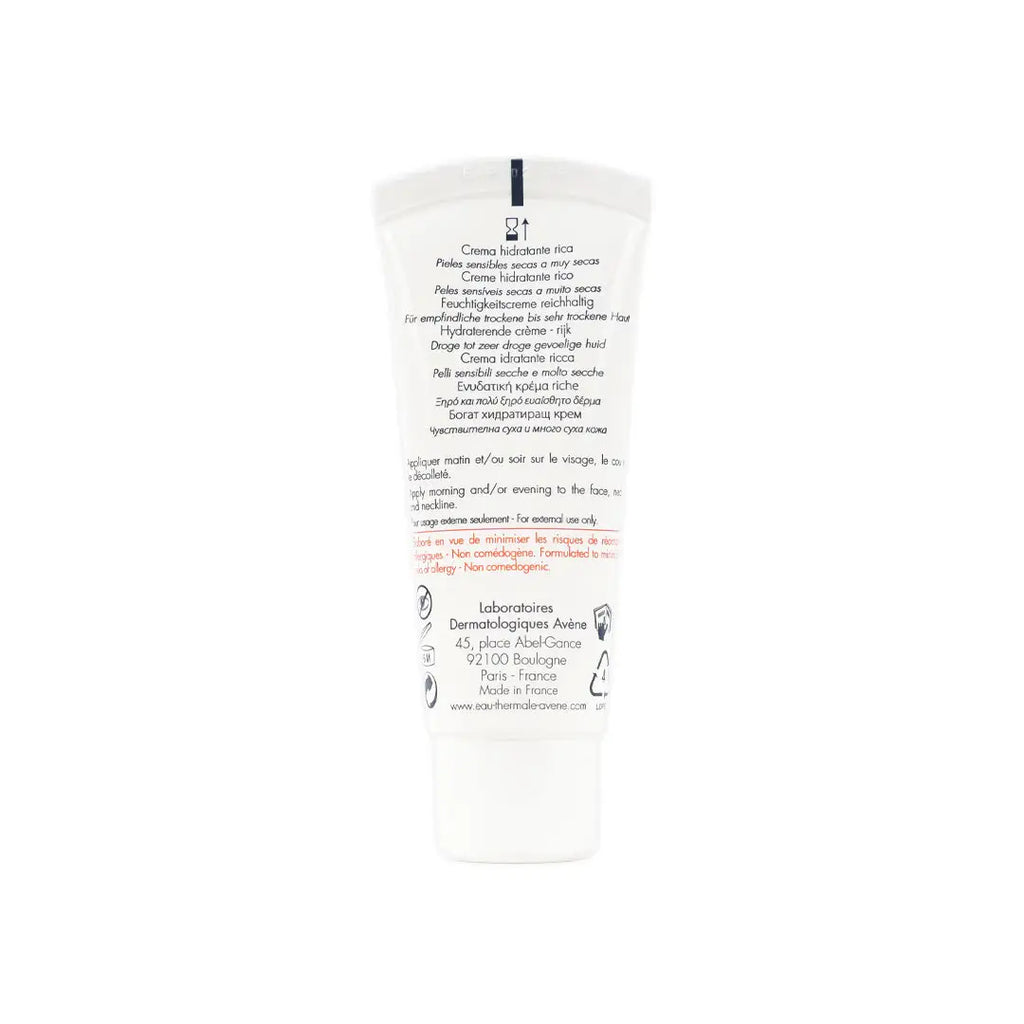 AVENE THERMAL SPRING WATER (AVENE AQUA). MINERAL OIL (PARAFFINUM LIQUIDUM). GLYCERIN. ISOHEXADECANE. DIMETHICONE. CETEARYL ALCOHOL. CARTHAMUS. TINCTORIUS (SAFFLOWER) SEED OIL (CARTHAMUS TINCTORIUS SEED OIL). ISOCETYL STEAROYL STEARATE. TRIETHYLHEXANOIN. GLYCERYL STEARATE. PEG-100 STEARATE. 1,2-HEXANEDIOL. BUTYROSPERMUM PARKII (SHEA) BUTTER (BUTYROSPERMUM PARKII BUTTER). CETEARYL GLUCOSIDE. BENZOIC ACID. BETA-SITOSTEROL. BHT. DISODIUM EDTA. FRAGRANCE (PARFUM). POLYACRYLATE-13. POLYISOBUTENE. POLYSORBATE 20. SODIUM HYDROXIDE. SORBITAN ISOSTEARATE. WATER (AQUA). XANTHAN GUM.