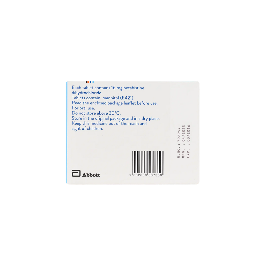 - Betahistine Dihydrochloride: This active ingredient is a histamine analog that helps to improve blood flow in the inner ear by blocking H3 receptors. This may increase histamine release, which in turn dilates blood vessels and reduces pressure in the inner ear. This action alleviates symptoms of vertigo, and ringing in the ears, and helps restore balance.
