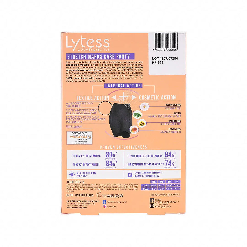 Maternity Panty is yet another Lytess innovation and offers a new application method to help prevent and reduce stretch marks. With this new generation of cosmetotextiles, you no longer must apply endless amounts of cream: the panty acts effectively on one of the areas most sensitive to stretch marks (belly, hips, buttocks, thighs). An innovative combination of a second-skin textile with a %100 natural cosmetic serum for continuous diffusion of the ingredients and fast, visible effects.