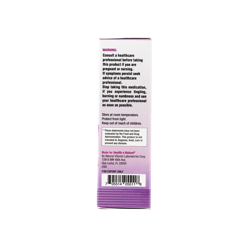 | Vitamin B6 (Pyridoxine HCl) | 120 mg | 6000% |