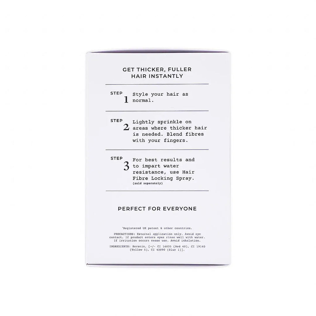 Our revolutionary hair thickening fibres are made from high quality, 100% natural keratin; a fibrous protein found in hair strands.They merge perfectly with your own hair using electrostatic charge to give instant, natural and durable hair thickness which lasts all day.