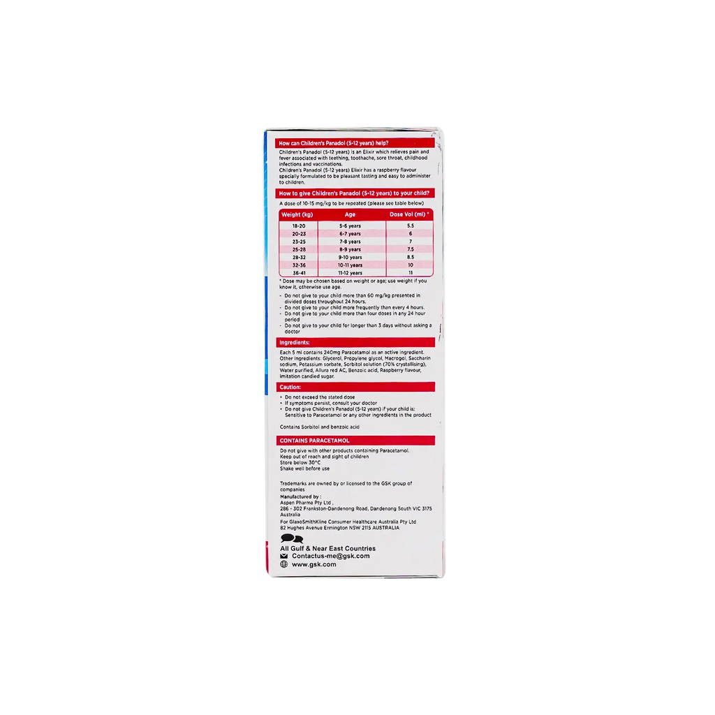 Panadol Elixer Kids 5-12 Years Syrup 100Ml