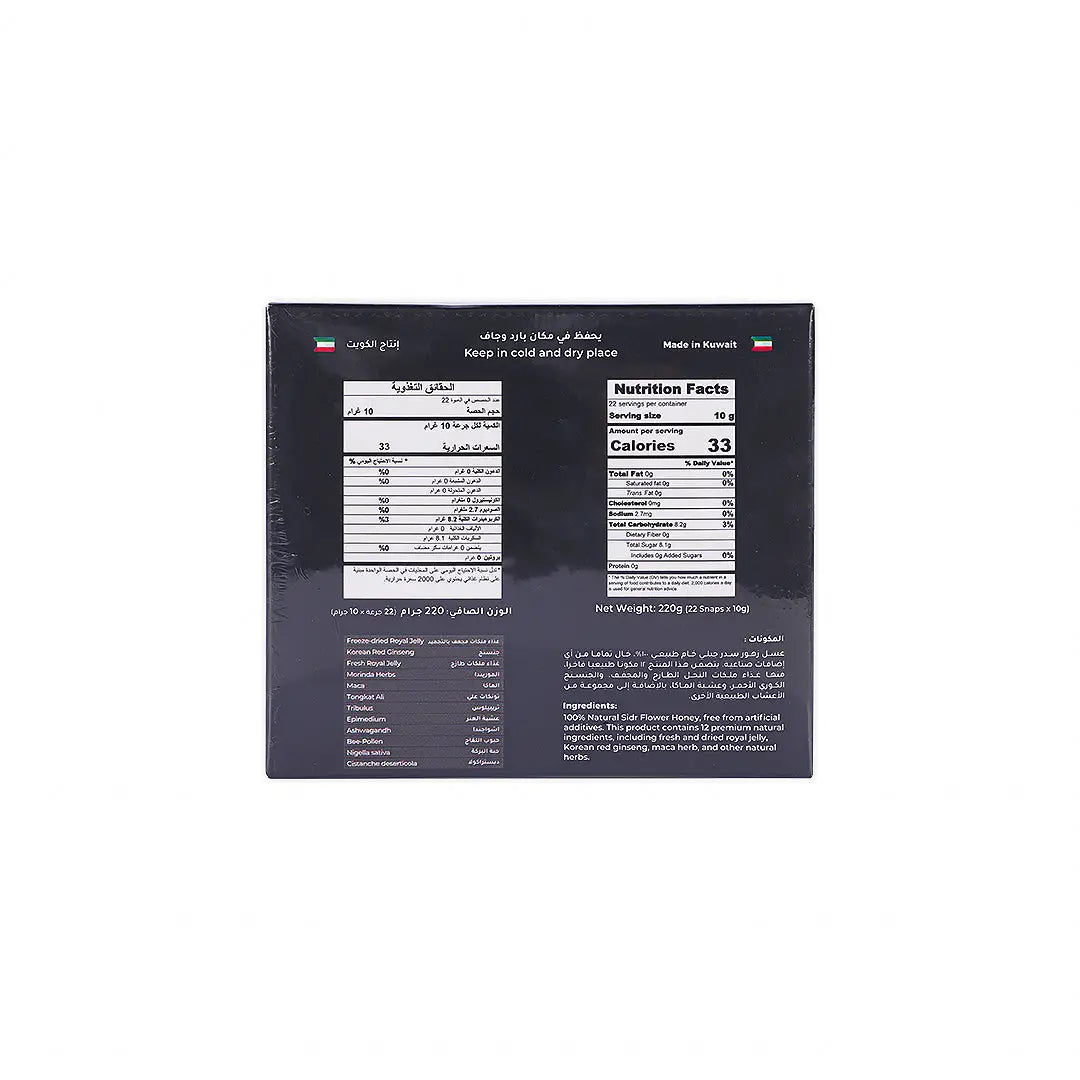 - Provides a natural source of energy and vitality through nutrient-rich honey and royal jelly.