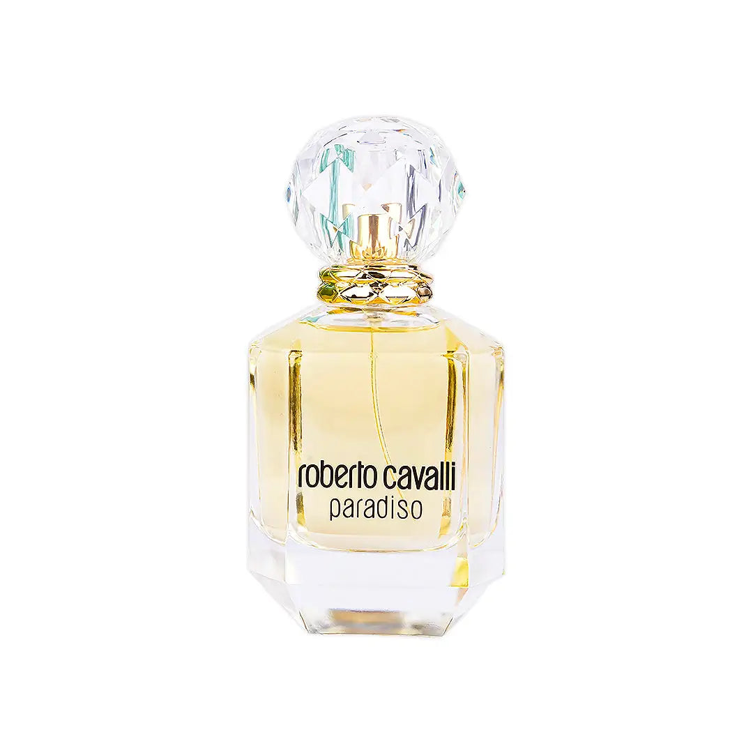 The Roberto Cavalli Paradiso edp fragrance is a refined, carl, sensual and very feminine, but also relaxed and carefree holiday scent. It is designed to highlight the tural charm of women and to help women feel attractive. Paradiso is announced as a floral woody fragrance of the Mediterranean and as a heavenly bouquet that opens with citrus notes of bergamot and mandarin, blending with the floral heart of jasmine. The composition ends with warm woody accords of cypress, parasol pine and pink laurel.