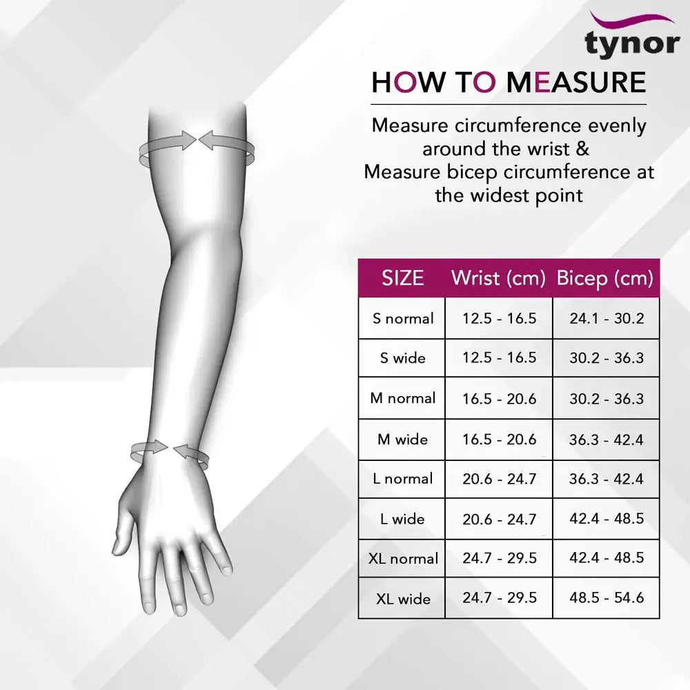 Tynor Compression Garment Arm Sleeves are specialized garment-like devices that provide support and graduated compression to patients who have burns, lymphedema, varicose veins, or other vascular conditions that require such garments.